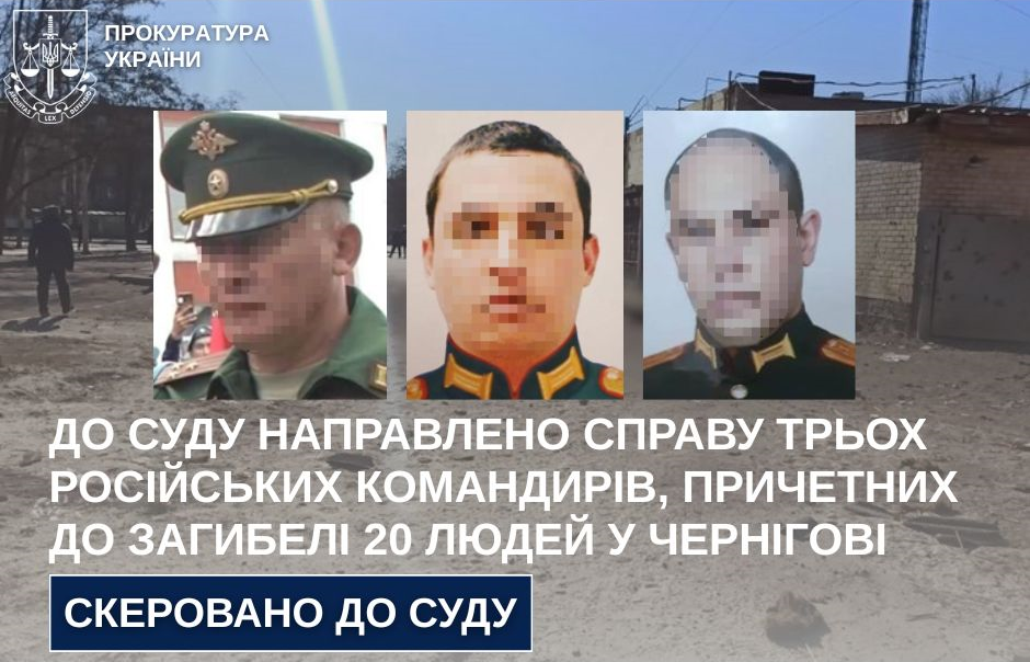 До суду направлено справу трьох російських командирів, причетних до загибелі 20 людей у Чернігові